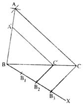6. Along BX mark off three points B1, B2 , B3 such that BB1 = B1B2 = B2B3.