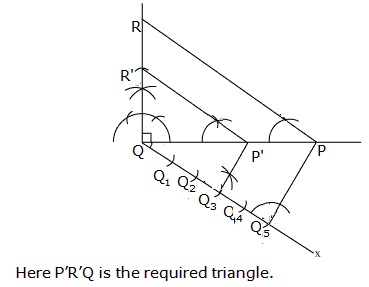 Q13. Construct a triangle similar to a given isosceles triangle PQR with QR = 6 cm, PR = PQ = 5cm such that each of its sides is six- seventh of the corresponding sides of triangle PQR.