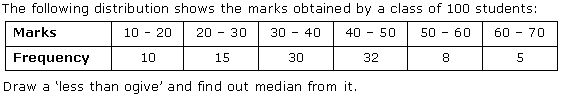 Q6. From the following data, draw the two types of cumulative frequency curves and hence determine the median.