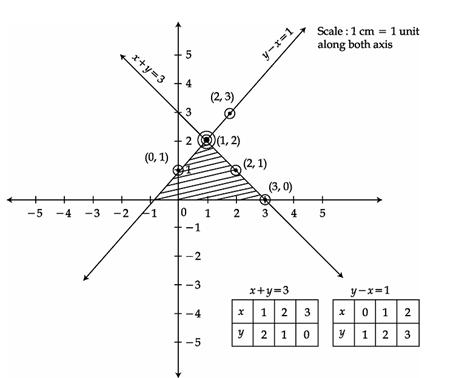 Q95. Represent the system of equations 4x - y = 4 and 4x + y = 12 graphically. Determine the vertices of the triangle formed by these lines and the x-axis. Shade the triangular region so formed.