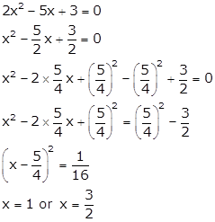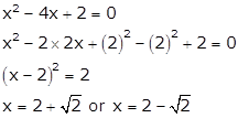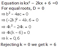 equal roots, D = 0, i.e., b2 - 4ac = 0