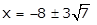 Q13. If 8 is a root of the equation x2 - 10x + k = 0, then the value of k is: