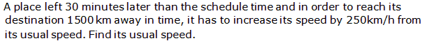 Q24. A train covers a distance of 90 km at a uniform speed. Had the speed been 15 km/hr more it would have taken 30 minutes less for the journey. Find the original speed of the train.