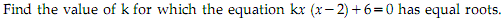 Q25. Find the value of m so that the quadratic equation mx(x - 7) + 49 = 0 has two equal roots.