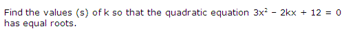 12)x2 - 2(p - 12)x + 2 = 0 has equal roots.
