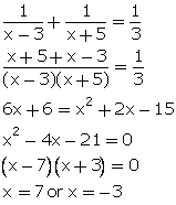 Q10. The sum of the reciprocals Rehman"s ages 3 years ago and five years from now is