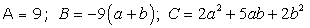 9x2 - 9 (a + b) x + (2a2 + 5ab + 2b2) = 0