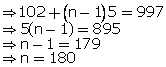 three digit numbers which leave the same remainder 2 when divided by 5 are