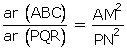 We know that the ratio of areas of two similar triangles is equal to the ratio of squares of their corresponding sides.