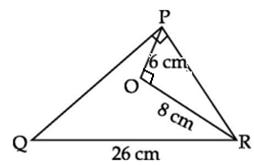 PQR where OP = 6 cm, OR = 8 cm and QR = 26 cm.