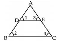 ABC, D and E are mid points of AB and AC respectively