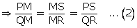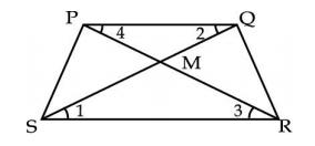 is a trapezium with PQ||SR. Diagonals PR and SQ intersect at M.