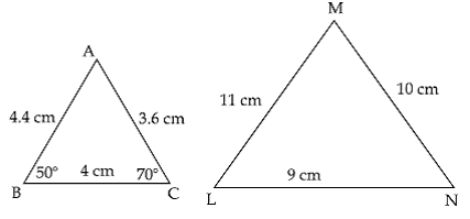 So we can conclude that even though the sides of the given triangles are in proportion, the corresponding sides of triangles , RPQ and MNS are not proportional Hence the triangles RPQ and MNS are not similar.