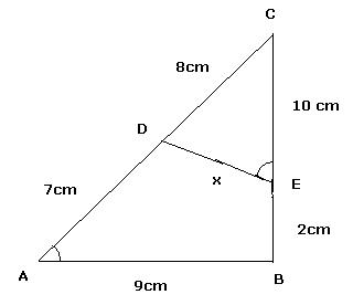 Q9. In the figure, DE || BC, then x is equal to: